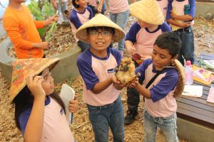 Dalam kegiatan ini siswa menjadi lebih mengenal jenis tumbuhan, cara menanamnya, mengenal hewan, dan cara merawatnya. Kegiatan siswa meliputi : memberi makan kelinci, marmut, kerbau, memberi minum kambing, dan melihat ikan alligator. Selain itu, anak-anak juga diajak langsung untuk memanen telur dan memetik jagung.