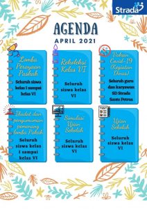 | Ibadat dan pengumuman pemenang lomba Pakah | Sabtu, 10 April 2021 | Seluruh siswa kelas I sampai kelas VI | Menumbuhkan rasa iman dan perayaan Paskah |