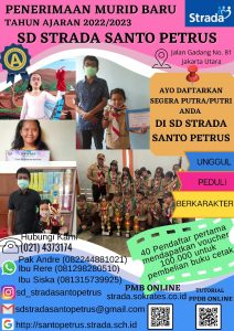 Mari segera daftarkan putra-putri bapak/ibu yang terkasih ke SD Strada Santo Petrus.