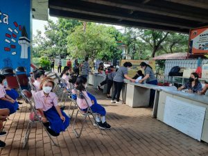 Pada hari Senin, 20 Desember 2021 siswa-siswi SD Strada Santo Petrus dari kelas I sampai dengan kelas VI melakukan vaksinasi covid 19 dosis 1 di RPTRA Sungai Bambu.