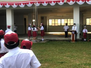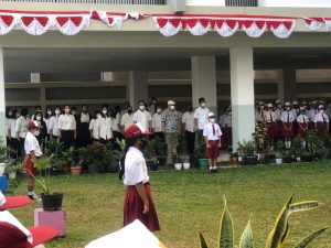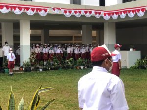Upacara berlangsung dengan lancar, dan hikmad. Saat amanat Pak Karyanta menyampaikan tema HUT RI ke 77 yaitu “Pulih Lebih Cepat dan Bangkit Lebih Kuat”.